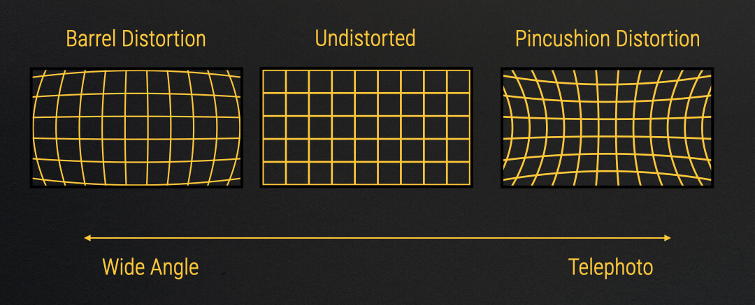 Barrel distortion is commonly seen in ultra-wide lenses, while pincushion distortion can be seen in longer lenses. In both cases, straight lines become curved.