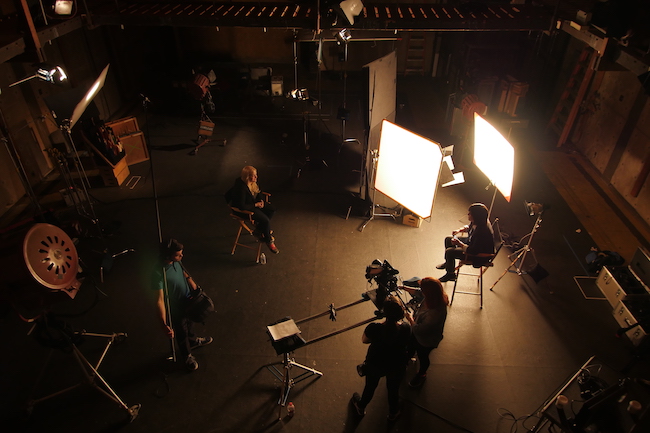 Swain: We always tried to have two cameras. One would be a static tight eyeline to me, and then the B camera would be on a slider or a dolly, tracking back and forth. The A camera might start in a medium and the B camera would be more of a cowboy, and then we’d switch lenses halfway through so the A camera saw the whole chair and the B camera was a beautiful closer shot with some movement. Because we were on stage, we always had room to move back, so we could do our wider interview shots on a 40 or 50mm, and the longer lens might be a 75mm.