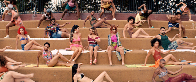 Over the course of the song “96,000,” everyone from the neighborhood gathers in and around the two massive outdoor swimming pools at Washington Heights’ Highbridge Park as they wait to hear the numbers of a winning lottery ticket that was sold at the bodega. The filmmakers wanted to include high-angle shots looking straight down over the pools, but local ordinances prevented them from flying a drone. They also considered a cable-cam system, but, Brooks notes, “there was no good place to rig it.”