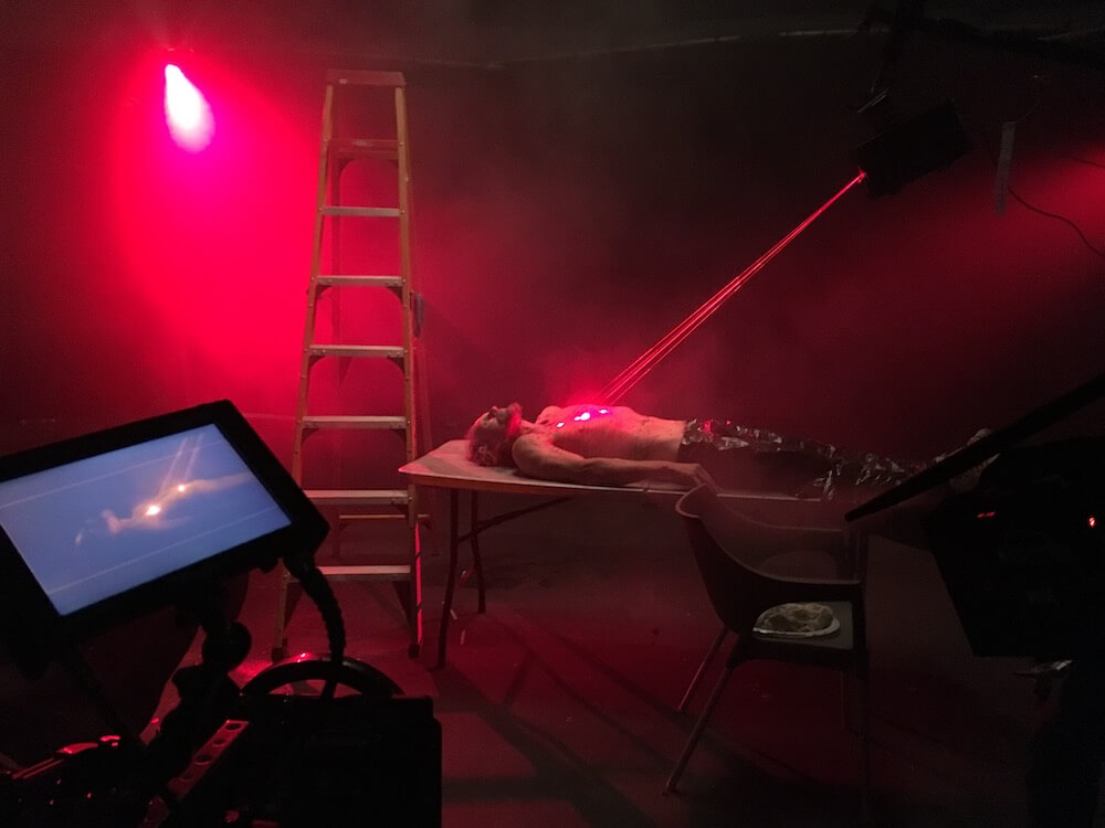 “For the interior of the alien ship, we loved the idea of using a warm treatment instead of the usual blue treatment,” the cinematographer continues. “We also needed the extra poke for the high-speed on the Phantom [camera]. I ended up pulling a T24 paired with a 15K Molebeam that we bounced off a 4x4 mirror board into a skirted and crated 12x12 with a Half Grid. The mirror board was used as the heat would be too intense to go full 90 degrees down. This big overhead source was paired with T5 backlights and a rolling T10 paired with a crated and silked 8x8 scrim that we used to fill shadows with just enough detail while still keeping the tone dark.”