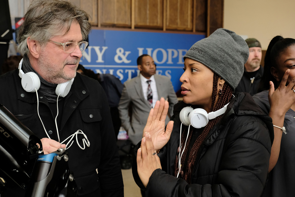 Chressanthis with Greenleaf Director Crystle Roberson (Photo: Guy D'Alema/OWN: Oprah Winfrey Network/Lionsgate Films)