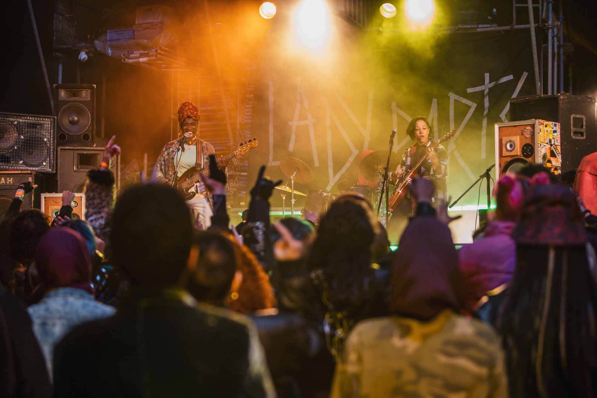 Throughout the series, the band practice in the apartment of lead singer-guitarist Saira [Sarah Kameela Impey]. "For each song performed in the Saira’s Bedsit, the team tried to make the light be dynamic, in sync with the song and mood of the moment, programmed live to camera and the beat of the music,” Olifirova explains. “We had an idea to ask design for ceiling pieces with translucent panels where we were able to shine moving lights through in various angles and colors.