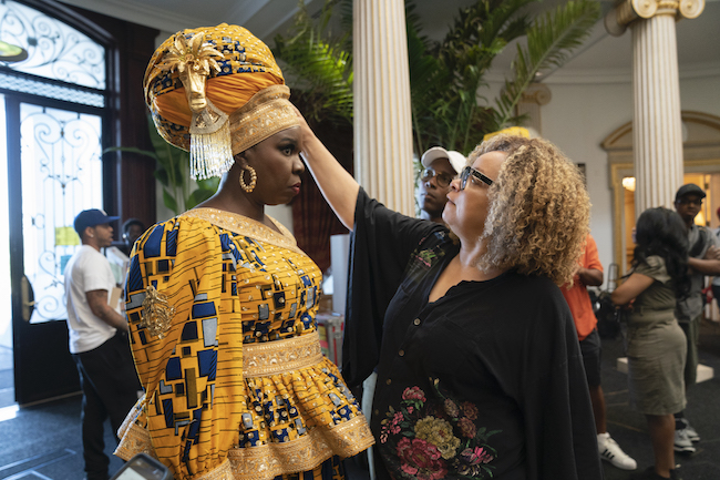 The production sourced its camera and lens package through Panavision Atlanta, and Light Iron Atlanta provided dailies services. The filmmakers framed for the 2:1 aspect ratio, within which, Williams says, “I wanted as many head-to-toe shots as I could do. I wanted to keep the frames as big and expansive as possible so we could see the grandeur of the beautiful costumes and palace sets.”