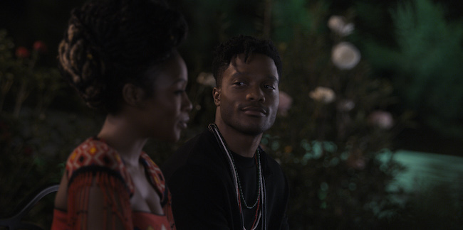 The cinematographer mostly worked with the DXL2 at its native 1600 ISO, though he occasionally set it instead for 800. “It looked great at both,” he says. “I loved all the latitude, and the 1600 was especially great when we did night-exterior scenes, like the scene in the garden where Lavelle and Mirembe [Nomzamo Mbatha] are walking. The blacks were great, and there was no grain.