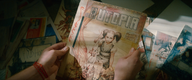Pehrsson was brought onto Utopia by director Toby Haynes, who would ultimately direct Episodes 1, 2, 3 and 8. Pehrsson shot each of Haynes’ episodes as well as Episode 6, and cinematographer Shawn Kim came aboard to shoot Episodes 4, 5 and 7. Kim joined the production after Pehrsson but still “very early on,” Pehrsson notes. “We sent references back and forth, and he brought a lot of visual ideas. It was great to have him as a collaborator and be able to pick his brain.